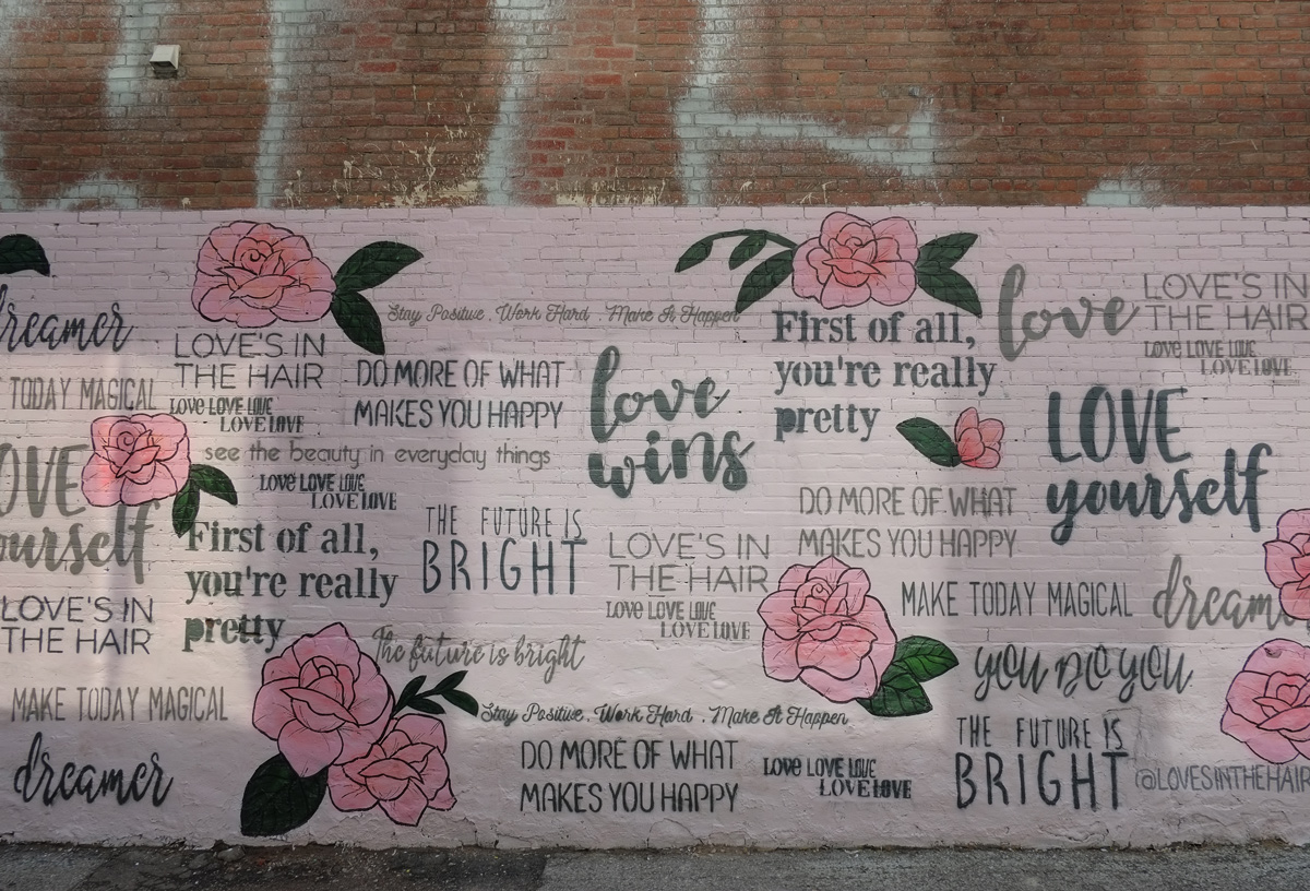 below: At the end of the lane I spotted this too…. can you see the LOVE?  It looks like it’s written in the middle of the pink and blue graffiti but it’s actually on the metal vent.