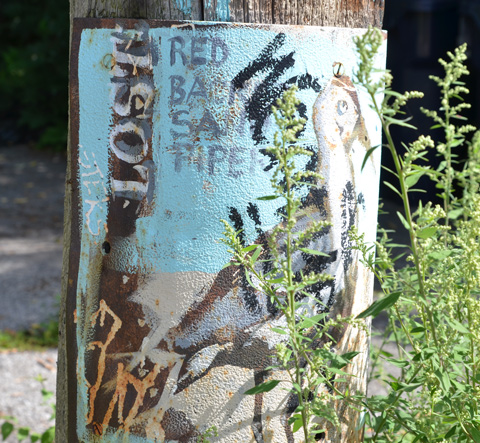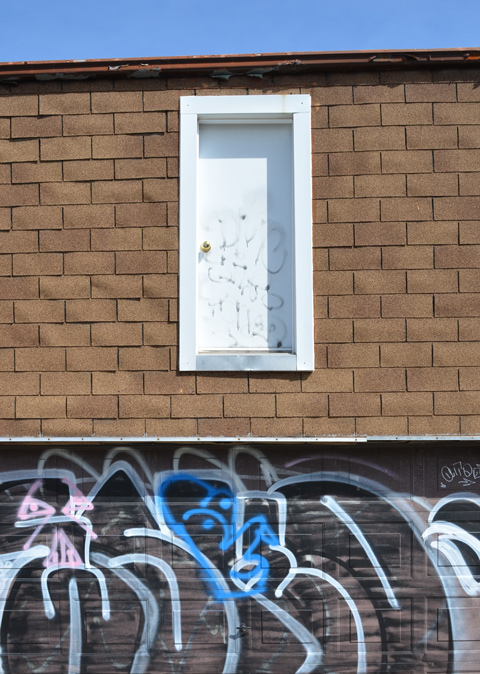 This is one of the blog posts that didn’t see the light of day earlier in the year.  These pictures were taken back in June, back when the leaves were green and people were wearing shorts.  This is the street art on the garage doors of Perly Family Lane.