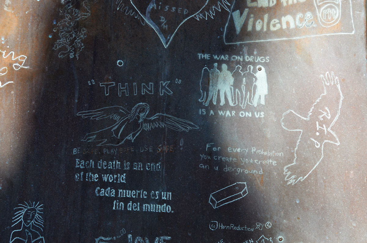 below: Around the corner is another mural. This one is painted onto the side of an old brick building by Omen514. As you can see, it is part of the most recent ad campaign by Sick Kids Hospital to raise 1.3 billion dollars to rebuild the hospital starting with the building at Elm and Elizabeth streets. The black and white of the mural matches the black and white of the video advertising. Omen514 had help from Nick Sweetman, Earth Crusher, Poser, and Five S, all of whom are street artists as well.