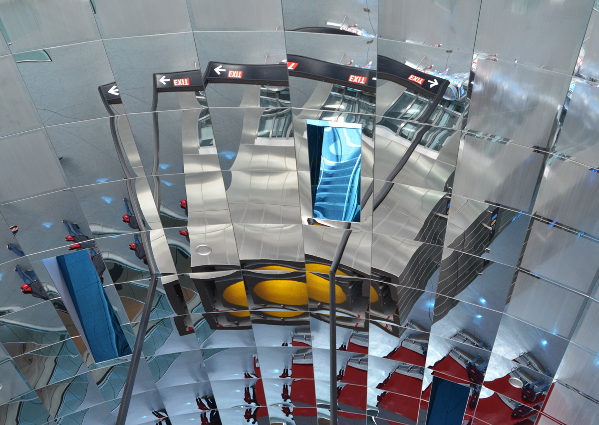 below: Dwarfed by the new condos around it, the stairwell and elevator shaft from the garage stands on its own. Whose picture is at the top? Someone blowing a giant bubble – must be quite the wad of gum!