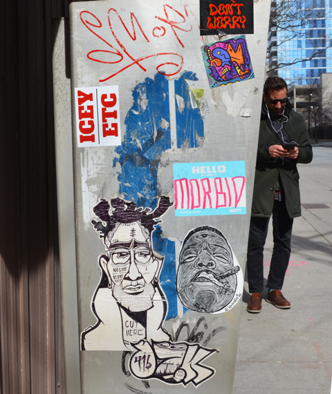 below: En masse has a number of pieces in the area including three metal boxes on the sidewalk – this is part of one of those boxes. Almost all of their work is in black and white.