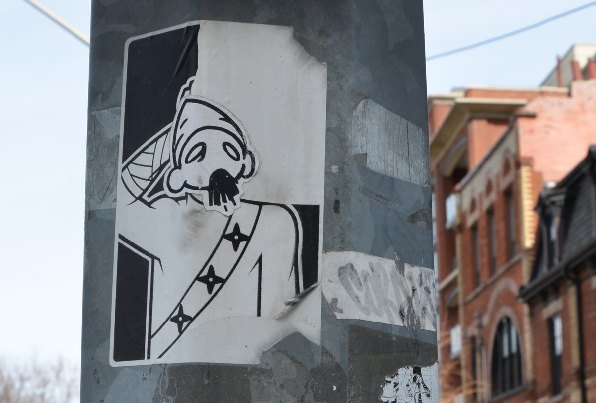 below: Nearby, his Toronto/Canada themed mural has not lasted as well. A couple of yellow birdies are still visible.