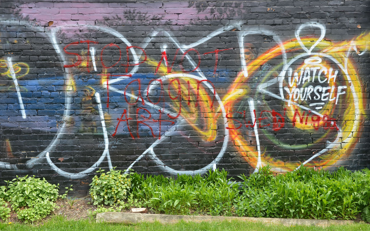 below: In 2013 the arch was repainted with the help of Mural Routes. The interior was also painted in the same rainbow colours.