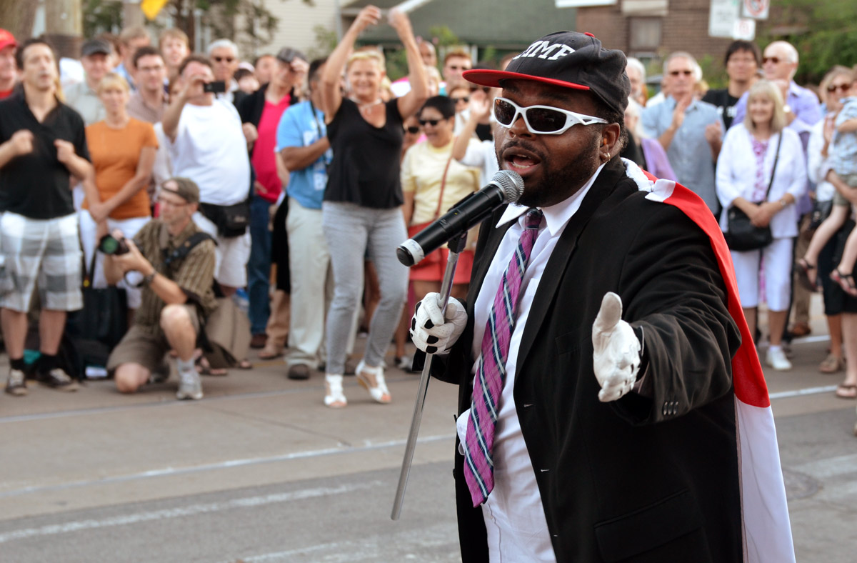 below: A younger version of Elton John made an appearance at the Ice Fest
