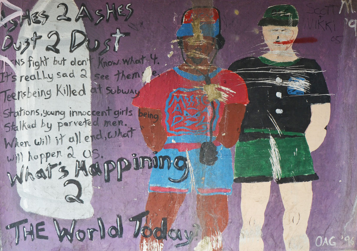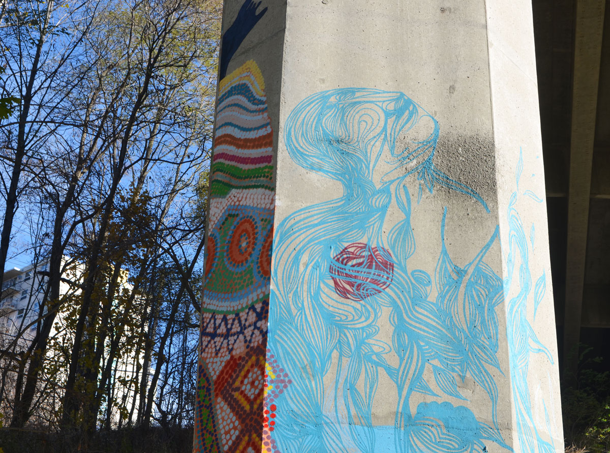 There is a railway underpass on Dupont just before it meets Dundas West. Several years ago the north side of the underpass was decorated with some murals. Most of them are in bad shape or have been tagged or painted over.