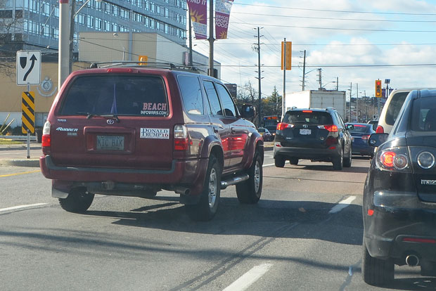 One last photo, taken as I was driving home across Lawrence. I guess it’s somewhat appropriate for the time. Not sure why one would be sporting such a sticker in Ontario though. C’est la vie. To each their own.