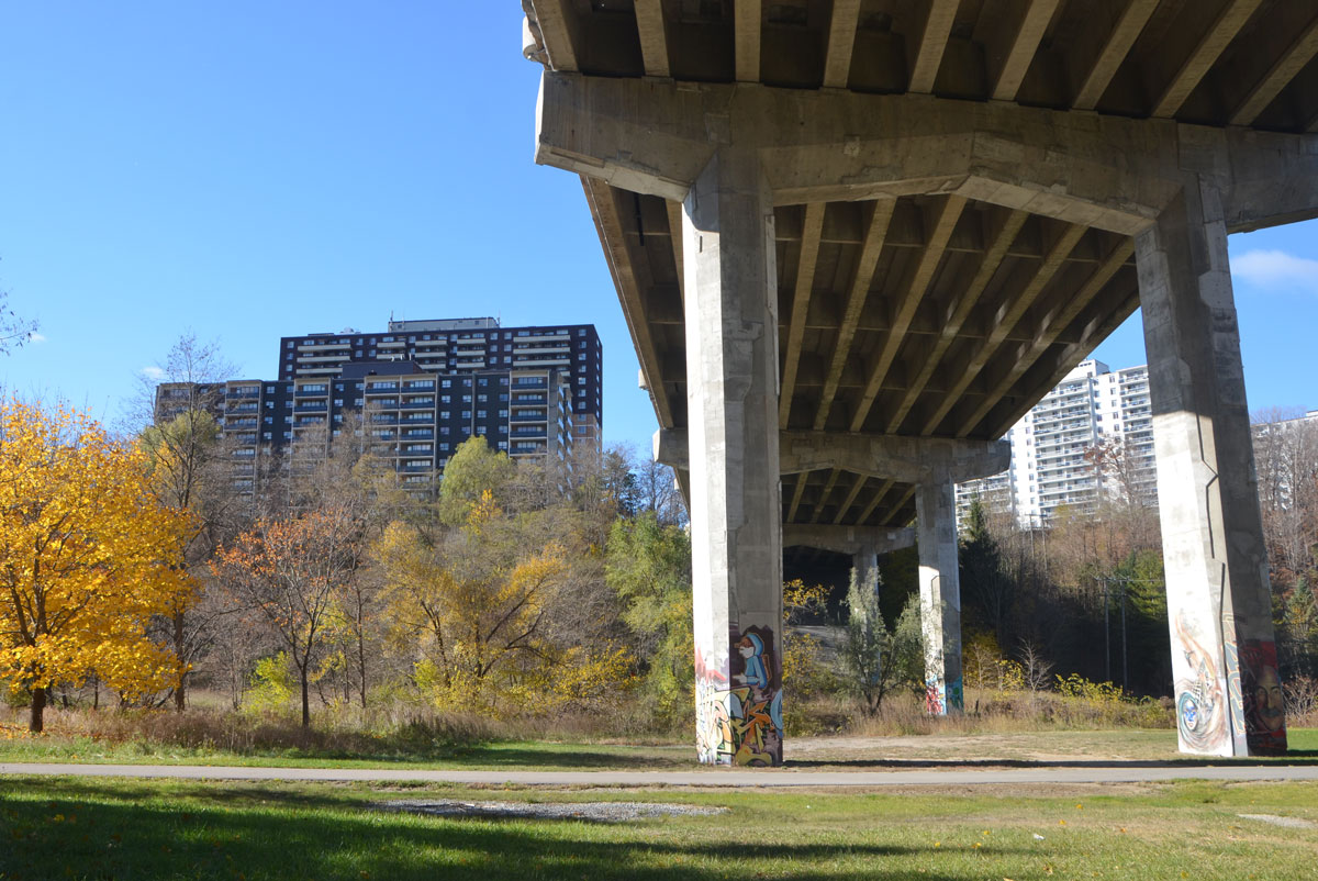 below: Bridges were meant for going under, right? Luckily there was an entrance to Morningside Park right there, and luckily I left my toboggan at home 🙂 Morningside Park is part of a network of parks that follow the Highland Creek. It starts near Markham Road and the 401 and runs south to Kingston Road near Guildwood station. A search for an answer to the question, “How many ravine parks does Toronto have?” has yielded no results yet. I’ll keep looking.
