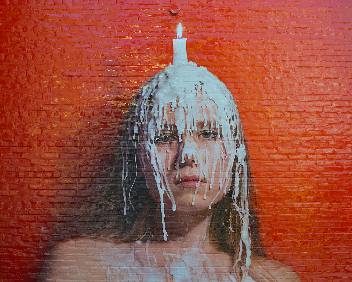 The ‘three’ refers to the fact that the next three that were on the same wall are by the same person, @inkcanon, who is also a tattoo artist. Portraits of three women. The first one is blowing bubbles, very big bubbles.