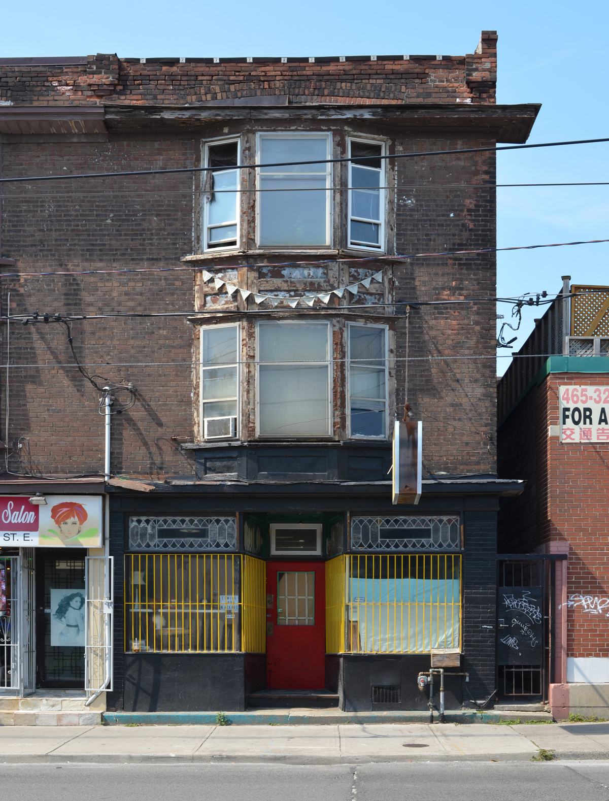 below: The 506 streetcar passes through Chinatown East (the area around Broadview & Gerrard) where many of the old houses are also businesses.