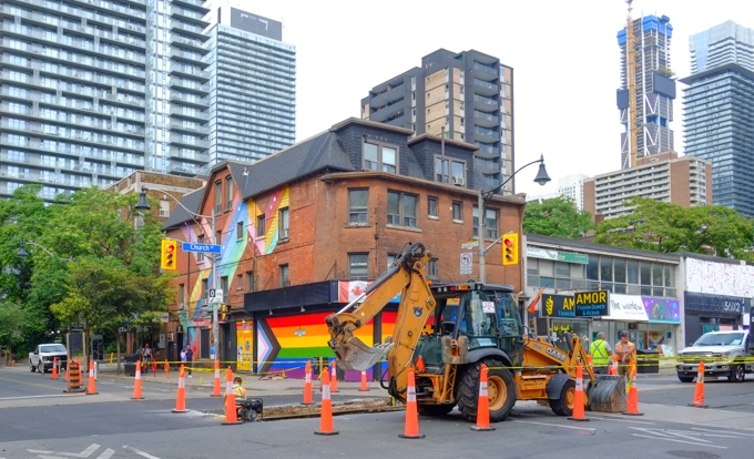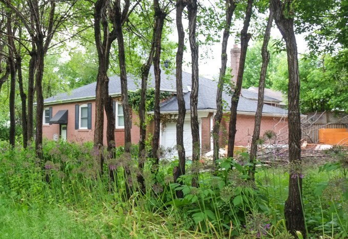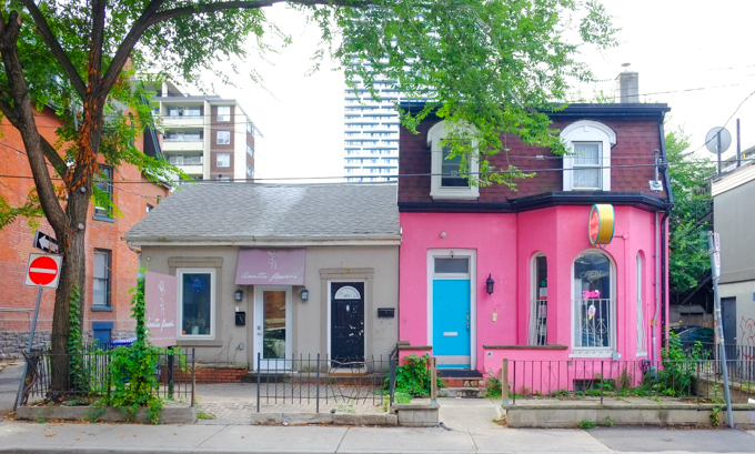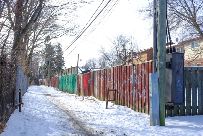 Every neighbourhood has a story to tell, even if it’s just the story of a quiet life in their own corner of the city. There are many similar threads that run through the many narratives of Toronto neighbourhoods – the ethnic stores and restaurants, the redevelopment of older buildings into new housing, quiet side streets. There’s probably a mix of residential styles – single family homes, rowhouses, older apartment buildings, and newer glass and steel condos where people are trying to live as best they can. It is a scene repeated over and over again. Parts are fascinating, parts are dull and lacklustre. There will always be utility poles and wires and garbage bins in the way. Maybe there will be an alley or two to explore – with old abandoned cars, basketball hoops, and graffiti left behind by jilted lovers or angry young men. There’s probably a vacant lot where a building has been demolished – or perhaps it hasn’t been demolished yet but it’s just sitting there taking up space and looking sadder and sadder with time.