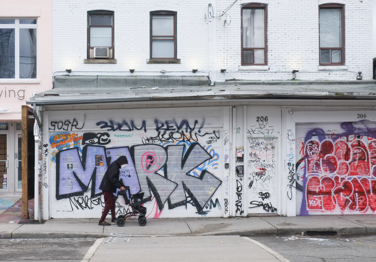below: Leslieville mural painted by Elicser Elliott, Queen Street East