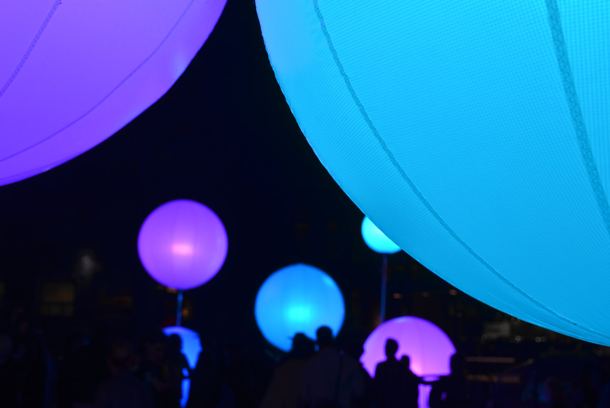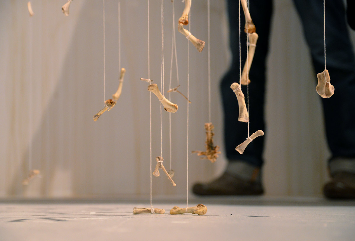 below: ‘Connectors’ is an entanglement of four orange tubes made of drainage pipes – if you speak into one end, which of the other 7 ends is the sound going to come out of? This was designed by Alexandra Griess and Jorel Heid from Hamburg Germany.