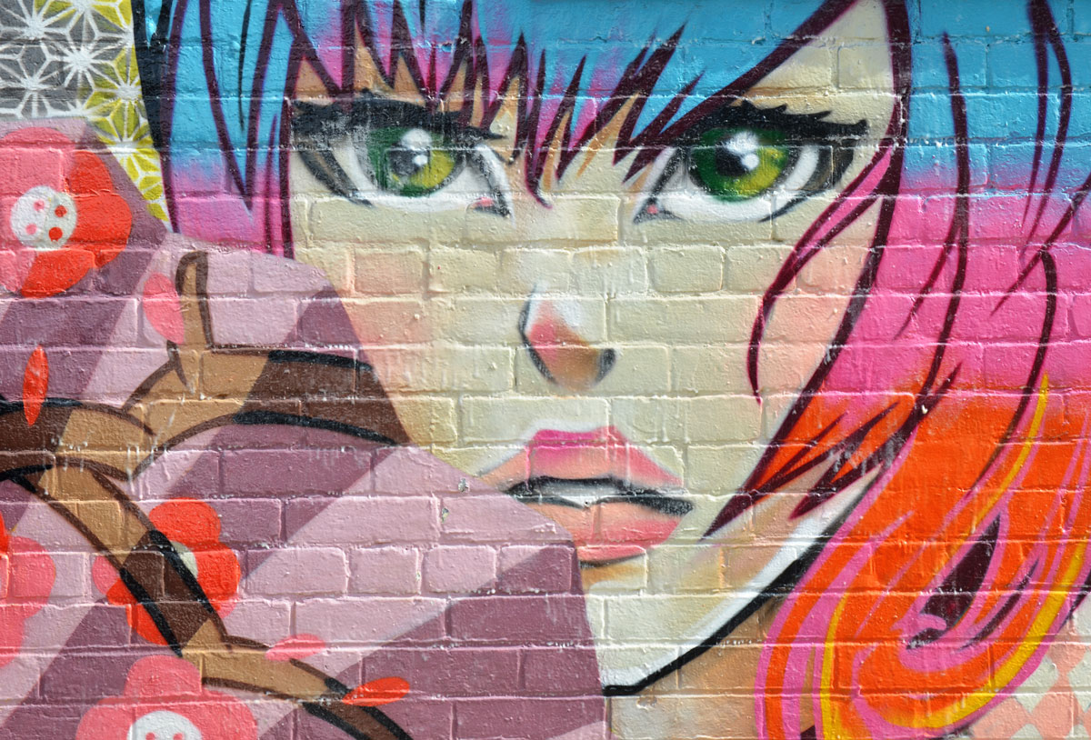 below: Japanese characters painted by Tokyo. Hint to street artists – if you want to be found, your moniker should be something that doesn’t bring up millions of unrelated hits on a search engine. Any ideas about what he might be saying?