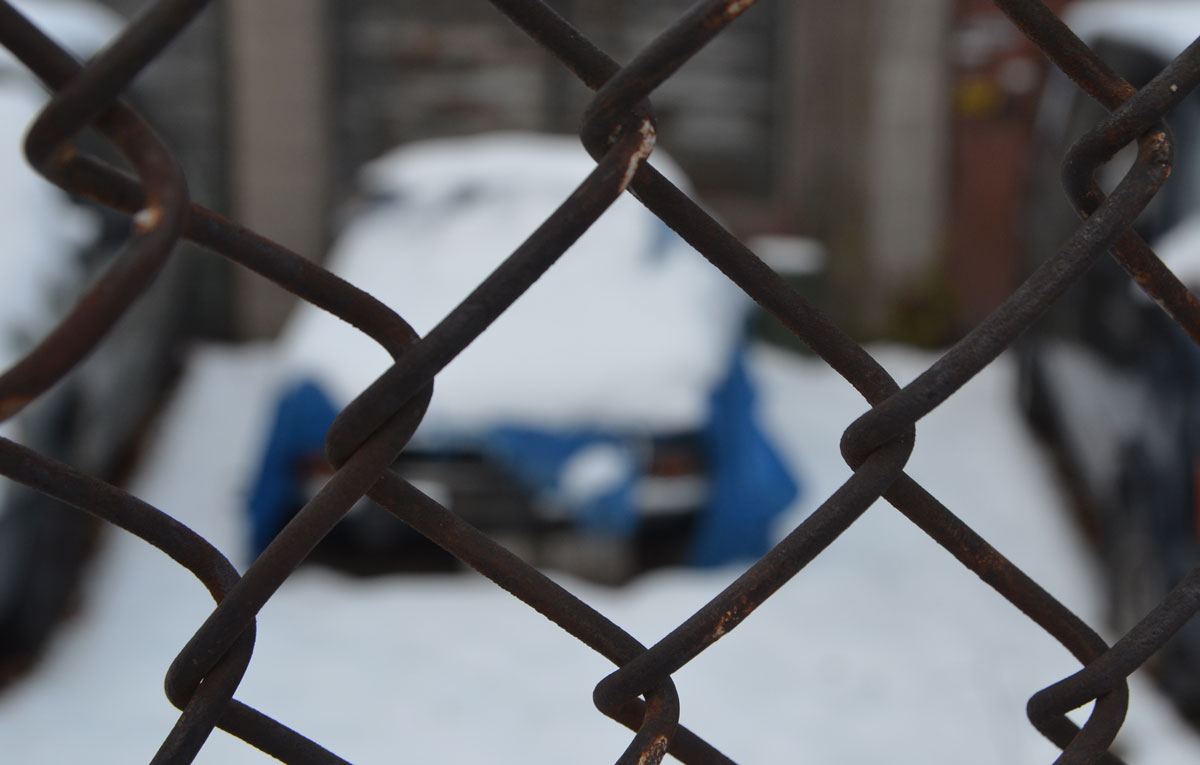 below: A shout out to Debbie who lent her car, Lightning, to the cause. Here, a black stenciled dog adorns the back door panel – in memory of Harley.