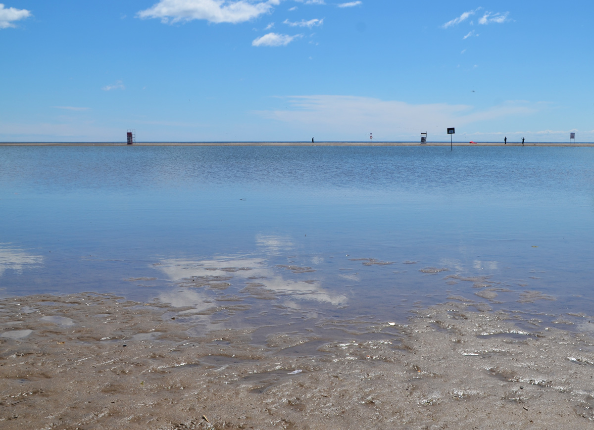 below: Looking towards Lake Ontario from Kew Beach Ave. Lots of trees and lots of what looks like grass but is more like mud. Squish, squish as I walked gingerly across the water logged ground, trying to keep my shoes clean.