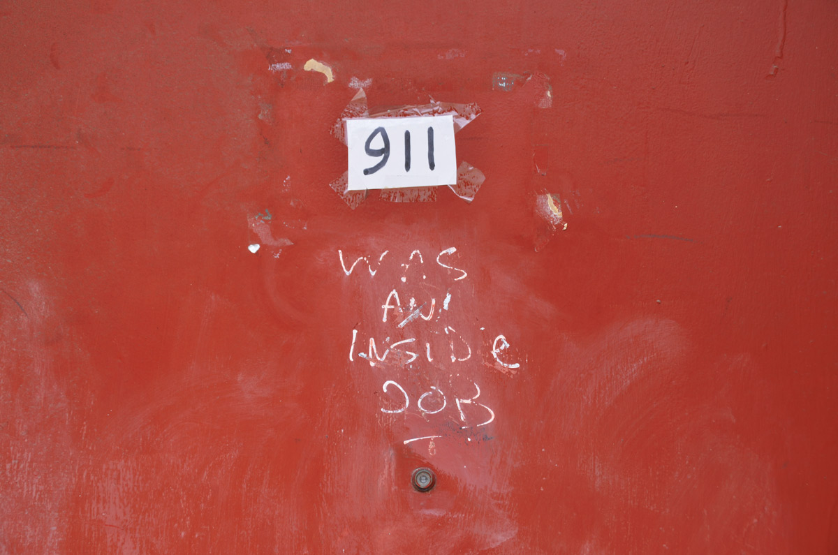 below: Remnants of old Rob Ford graffiti still remain around the city including this doorway.