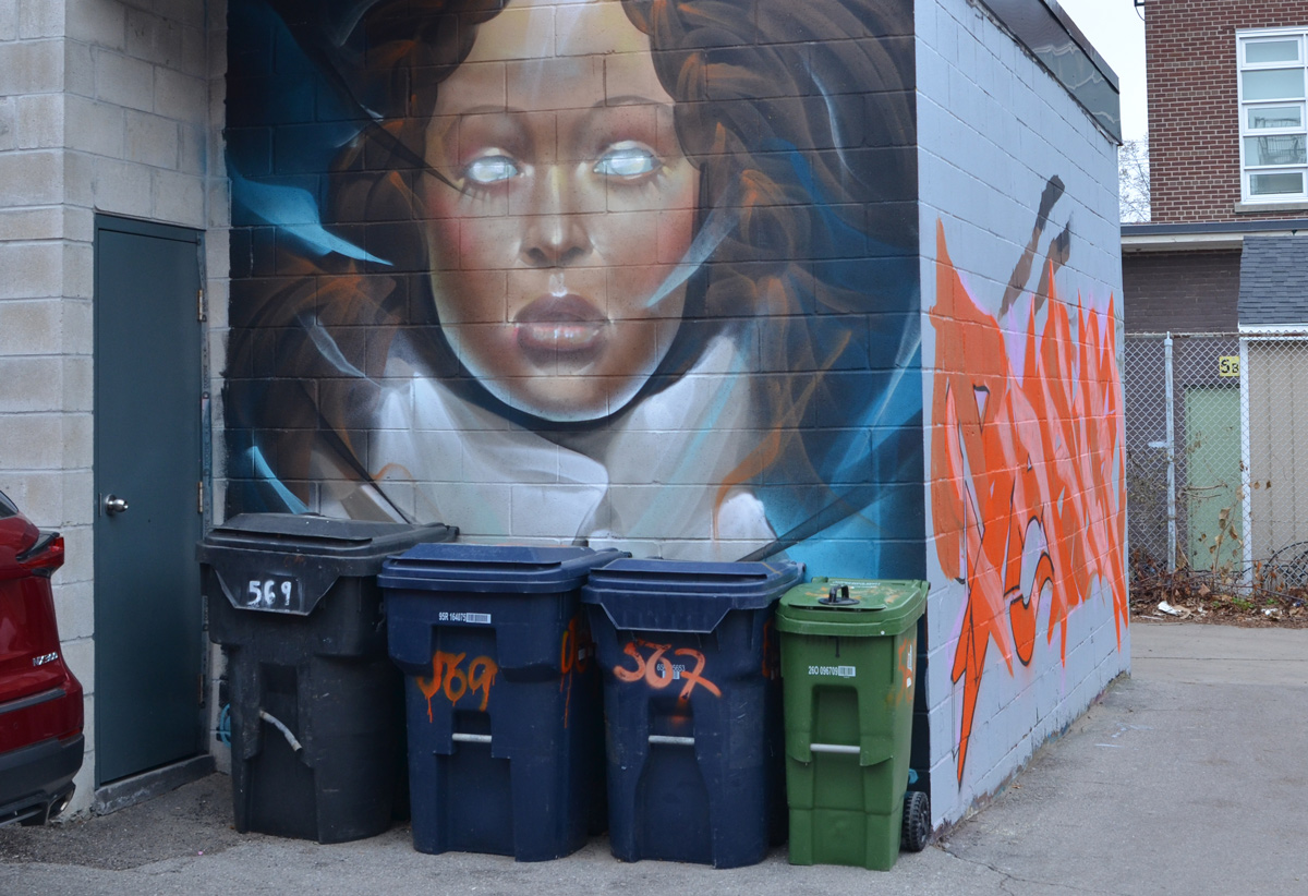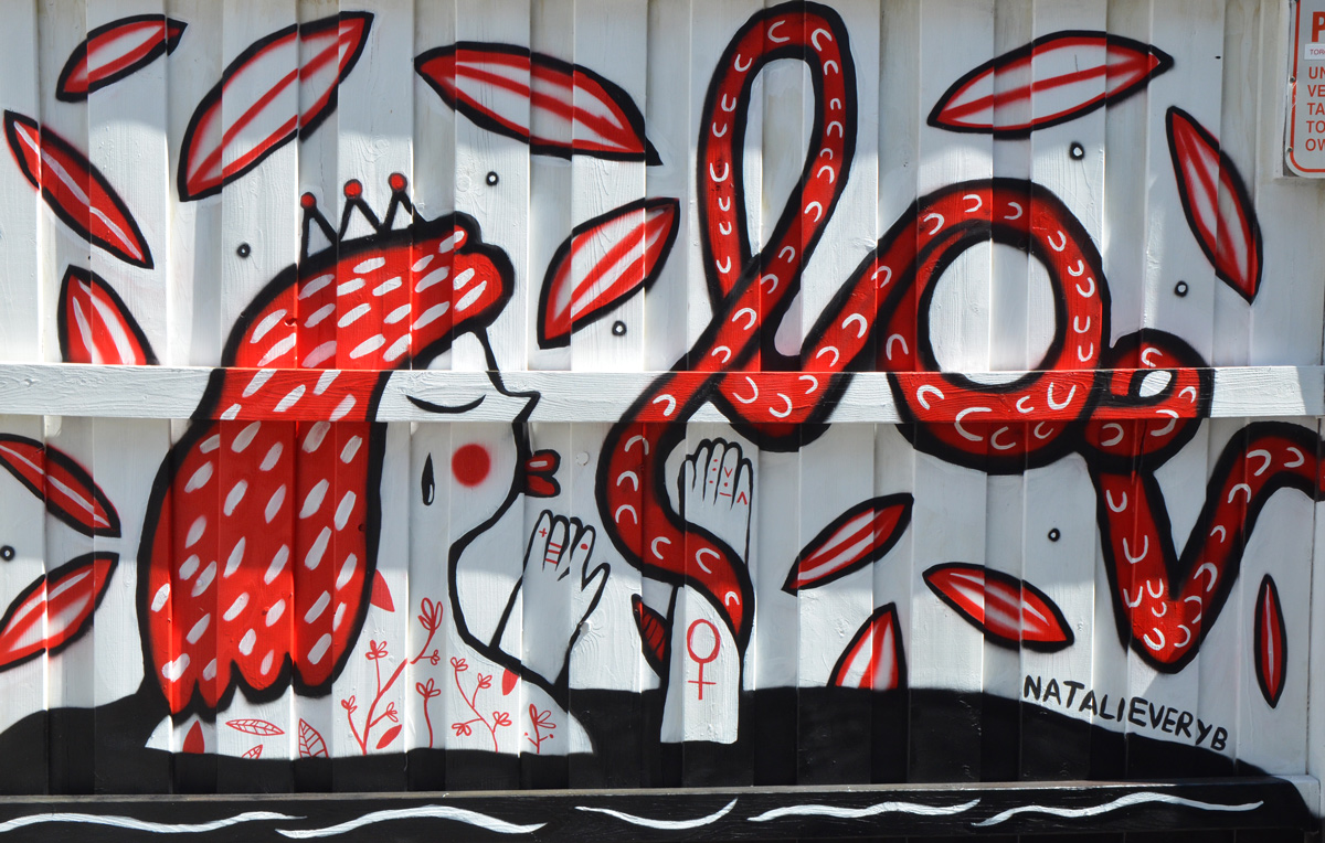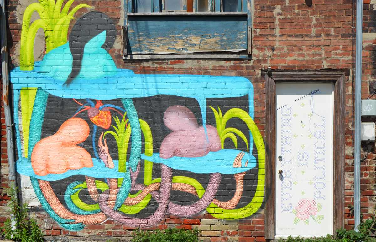 below: Emily May Rose mural in an alley – women, we come in many shapes and sizes.