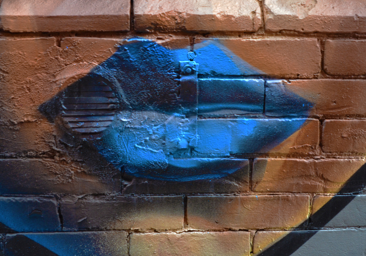 below: Lightning alert! It’s a potato, no, it’s a cloud! Or maybe a lightning bug! Small metal street art by Rocky Zenyk