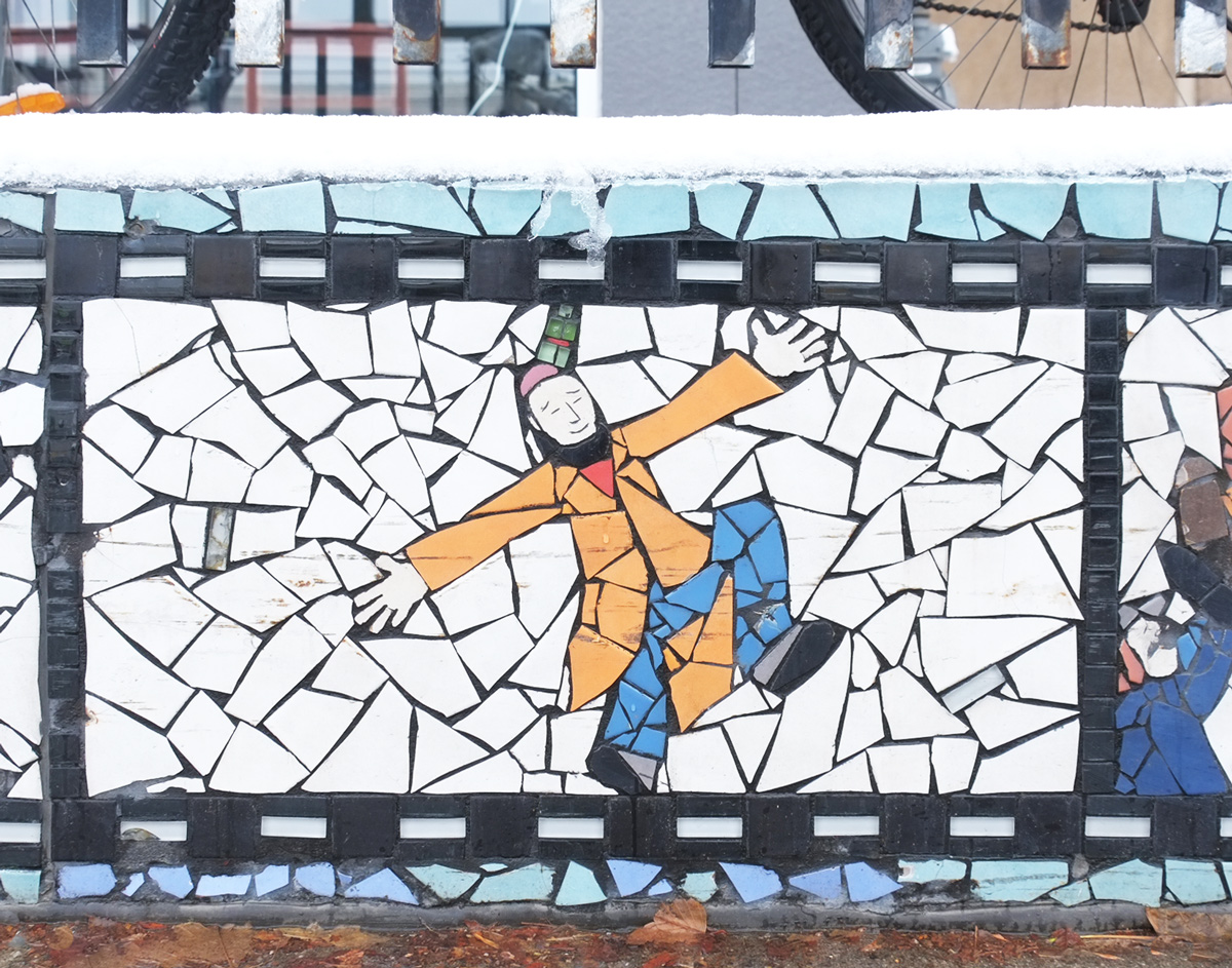 - On the side of Legion 13 on Kingston Road is this large mural. Painted in memory of Max Silverstein, by John Hood with help from Alexandra Hood and Asif Khan, 1991. Restored in 2010 by Blinc Studios. “Scarborough Rifle Company marching to the Niagara Frontier, June 1, 1866.”