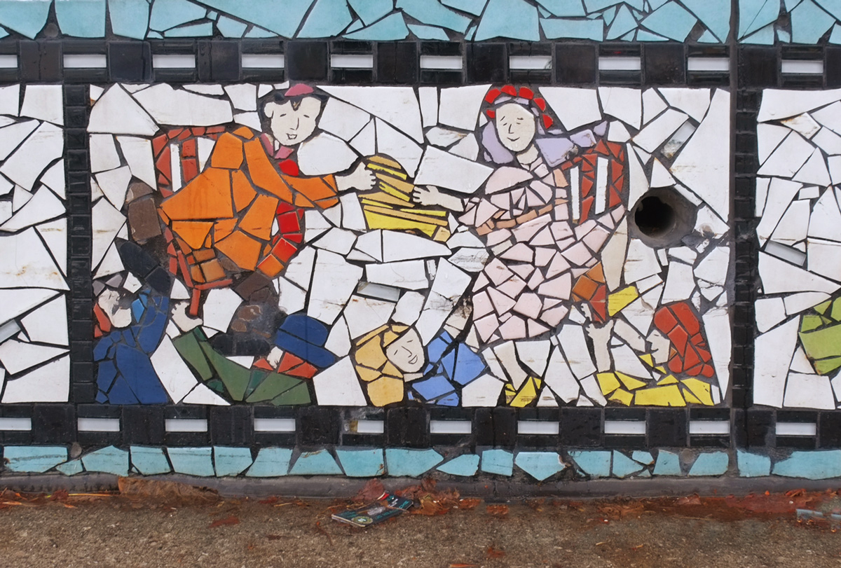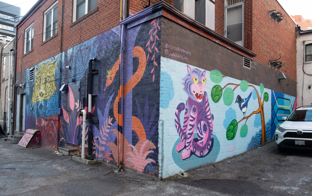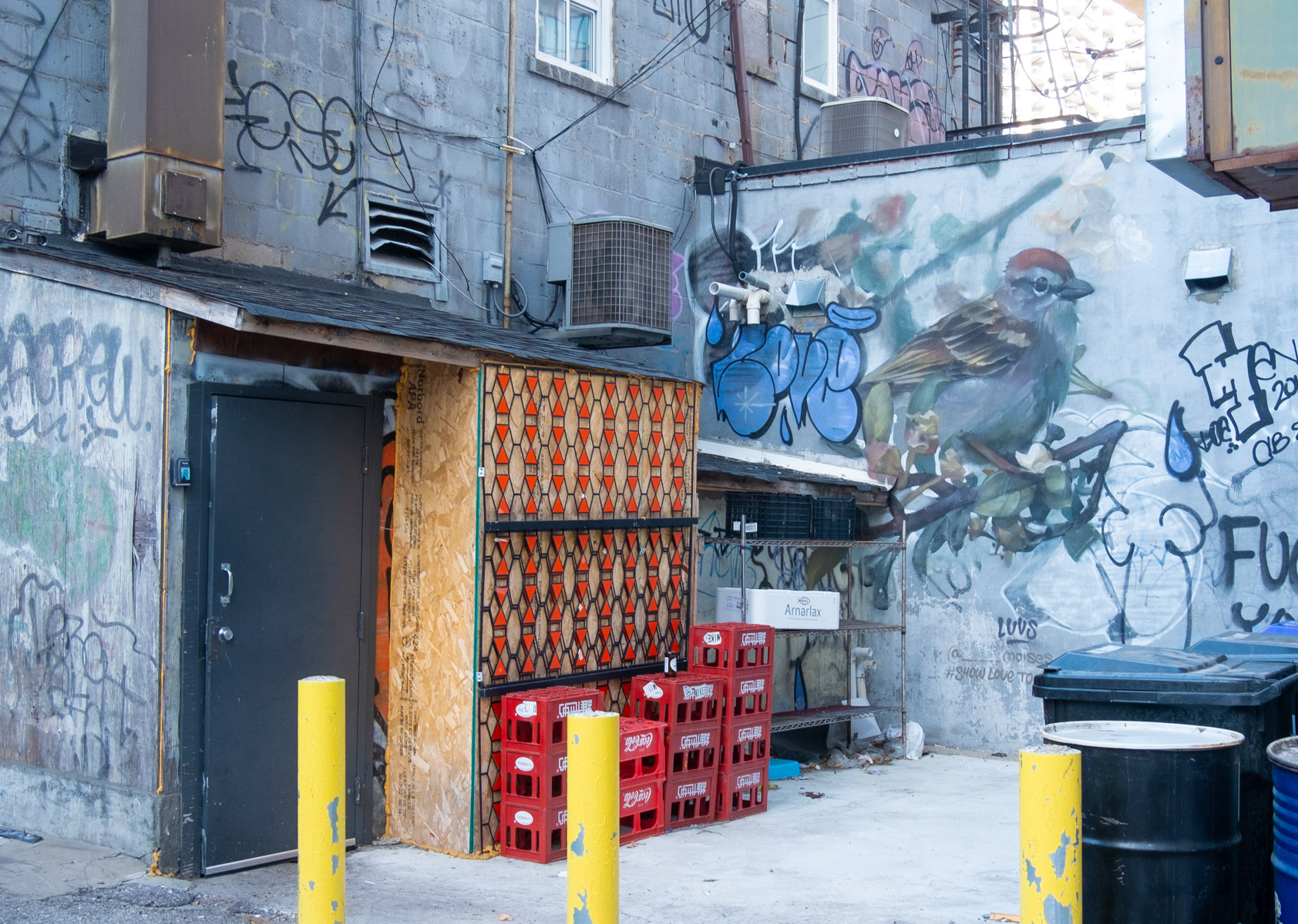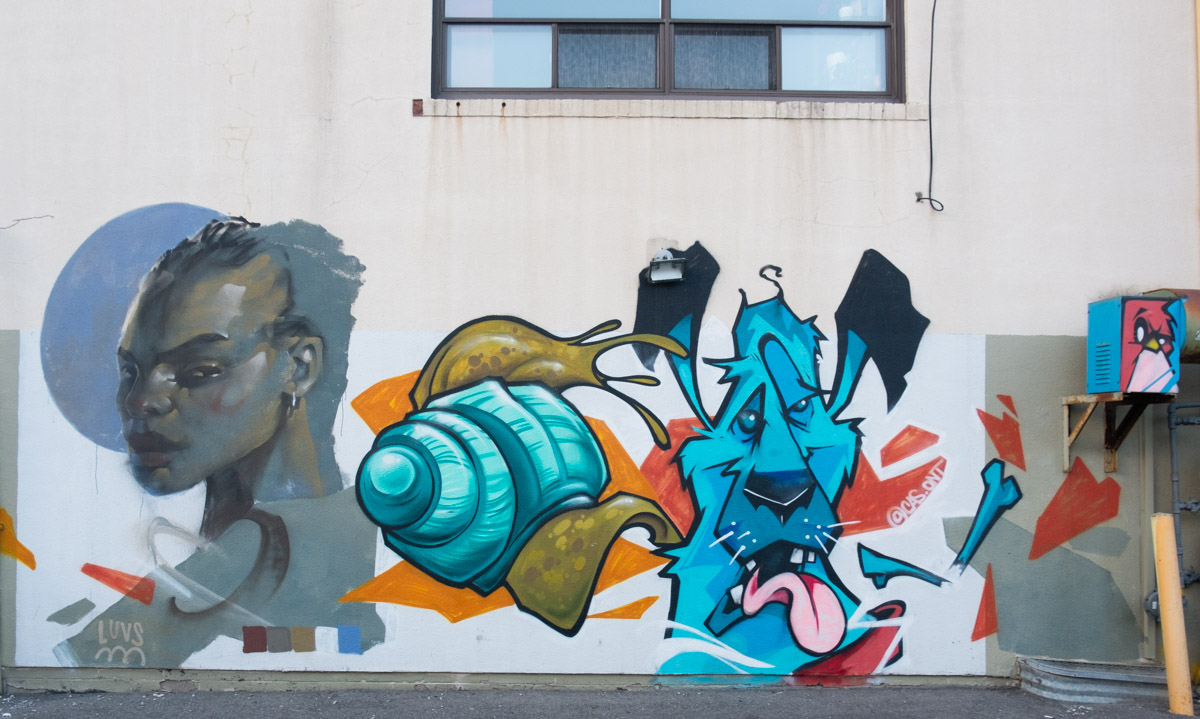 below: You can’t see it in this photo but the mural above is on the wall of Stop 17 Variety (by the parking lot on the right).