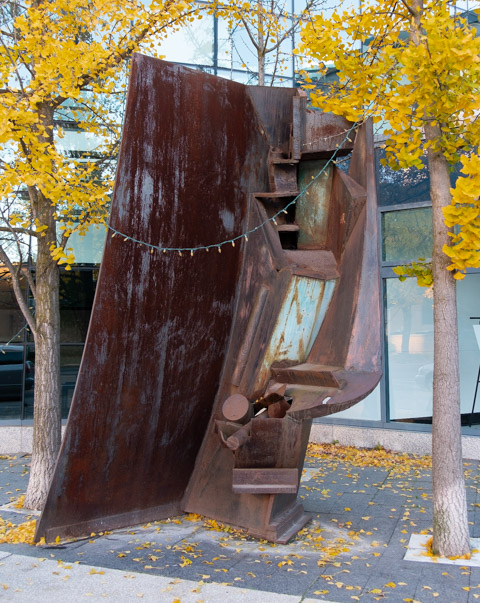 below: At the corner of Kingston Road & St. Clair is one of the Scarborough Heritage Trail murals funded by Mural Routes. It is “In The Way of Progress” and shows a Kingston Road radial railway car at Stop 17 with Scarborough High School (later changed name to R.H. King Academy) in the background. It was painted in 1996 by Phil, Jennifer, and Jamie Richards.