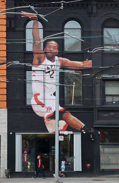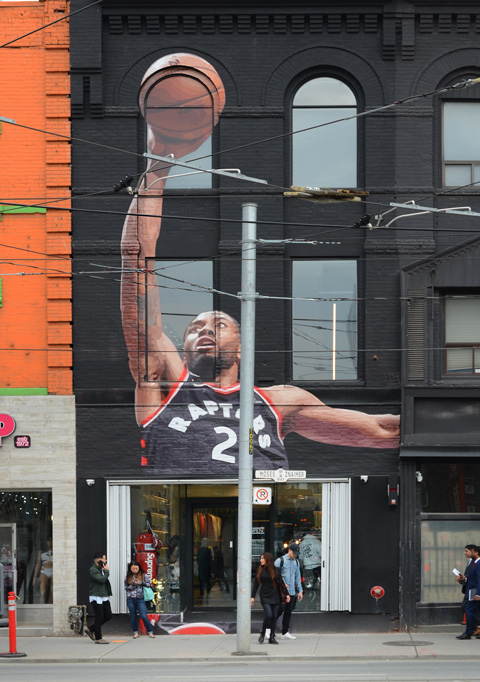 Kawhi Leonard, bigger than life, on Queen Street West.