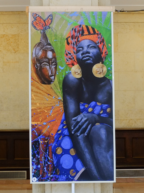 There are 2 art installations in the West Wing at Union Station. The first is a group exhibit, “A Transit Through Time” featuring six Black artists – Destinie Adélakun, Pixel Heller, Segun Caezar, Heritier Bilaka, Rico Poku and Camille Kiffin. Each artist is responsible for one panel…