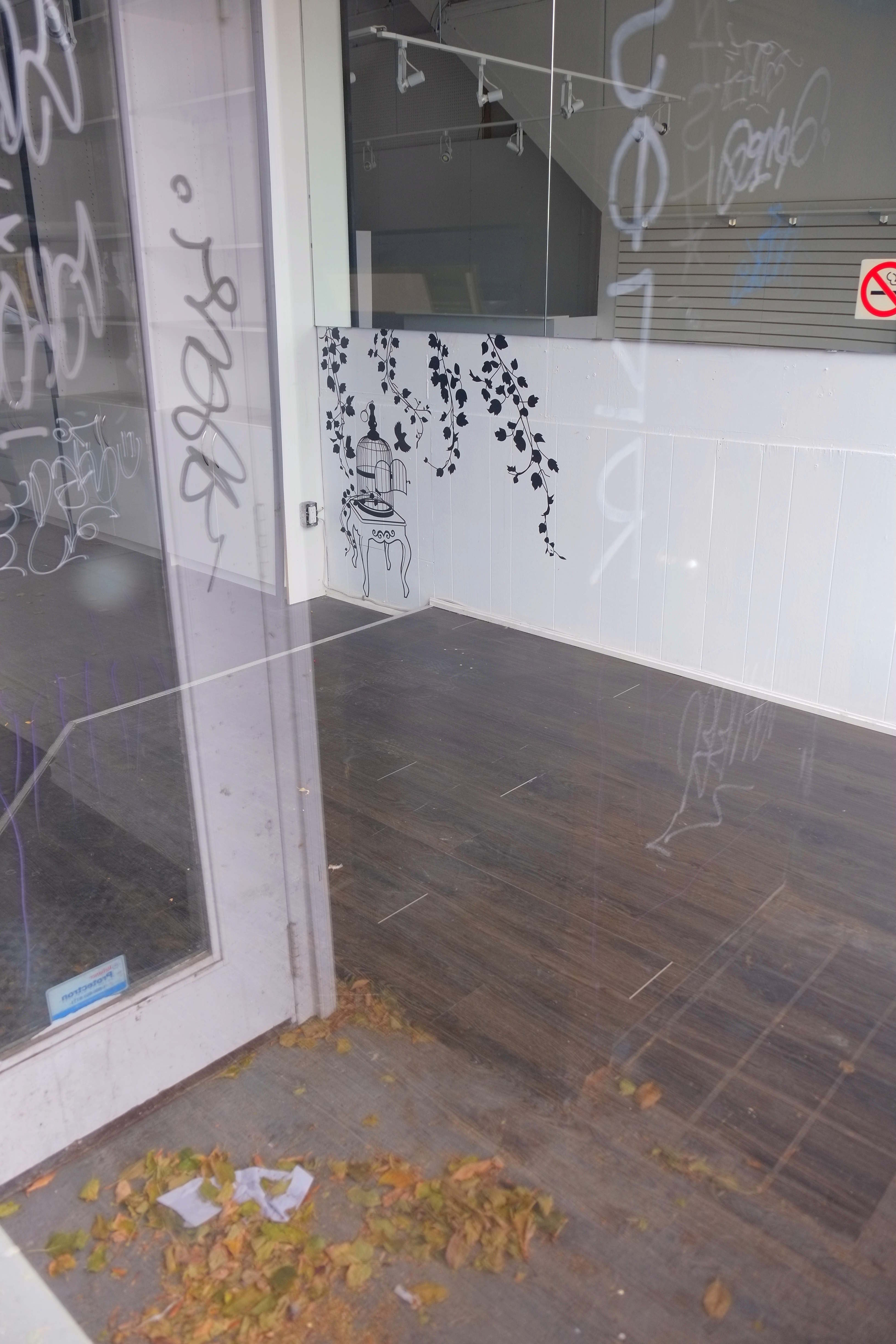below: Someone cared enough to paint this delicate birdcage and ivy scene on the wall. Doesn’t it make you wonder who did it? and why? and what happened to them?