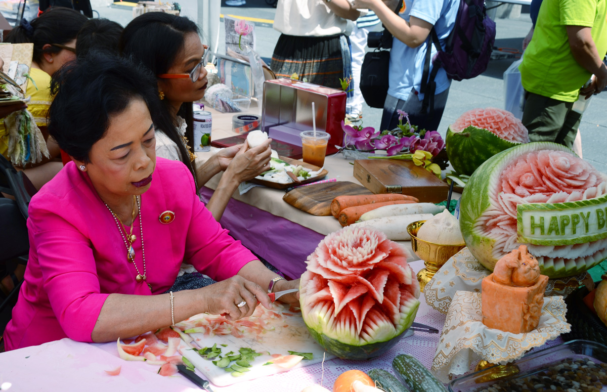below: There was a Thai festival at Yonge Dundas Square with dancers performing in front a screen that was showing a video, in real time, of them dancing.