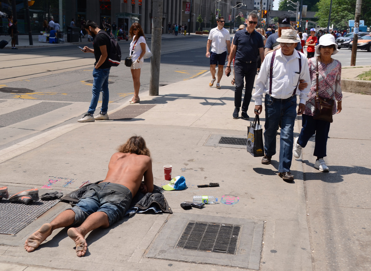 below: Mellow Dee plays the piano outside the south entrance of the Eaton Centre.