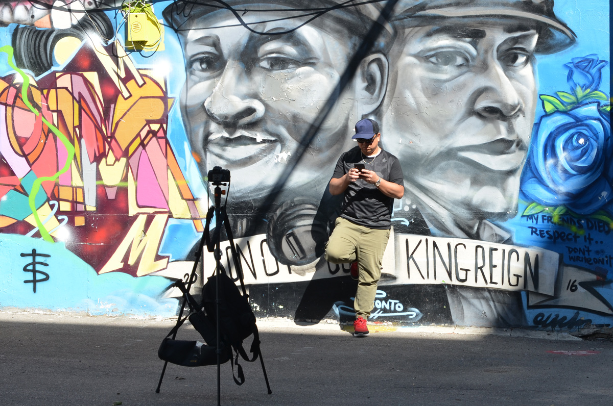 below: At College and Ossington, a mural by Alice Pasquini (in partnership between the Istituto Italiano di Cultura Toronto, the College Promenade BIA and the City of Toronto).