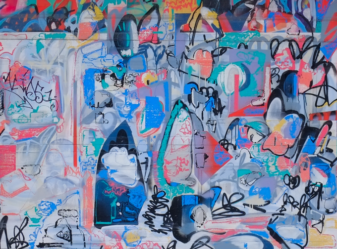 below: Street art painting, abstract, by Mony Zakhour