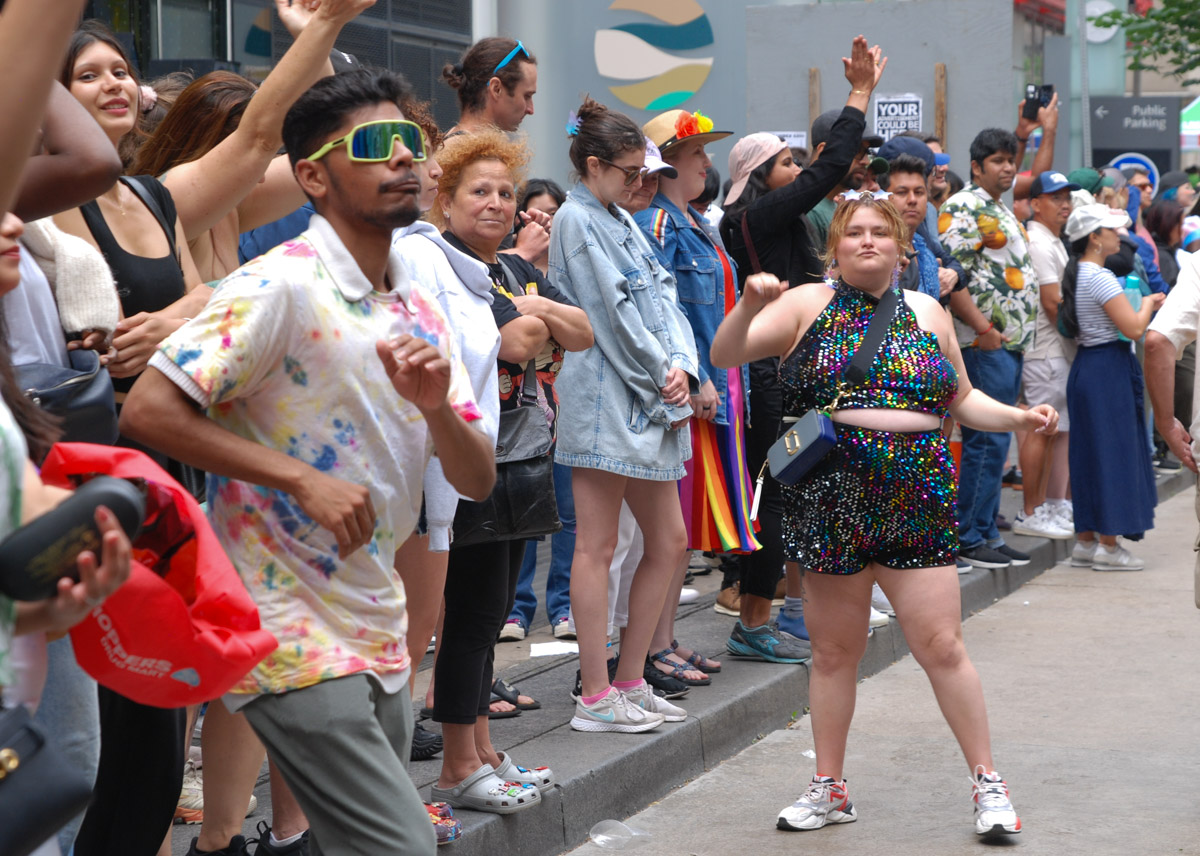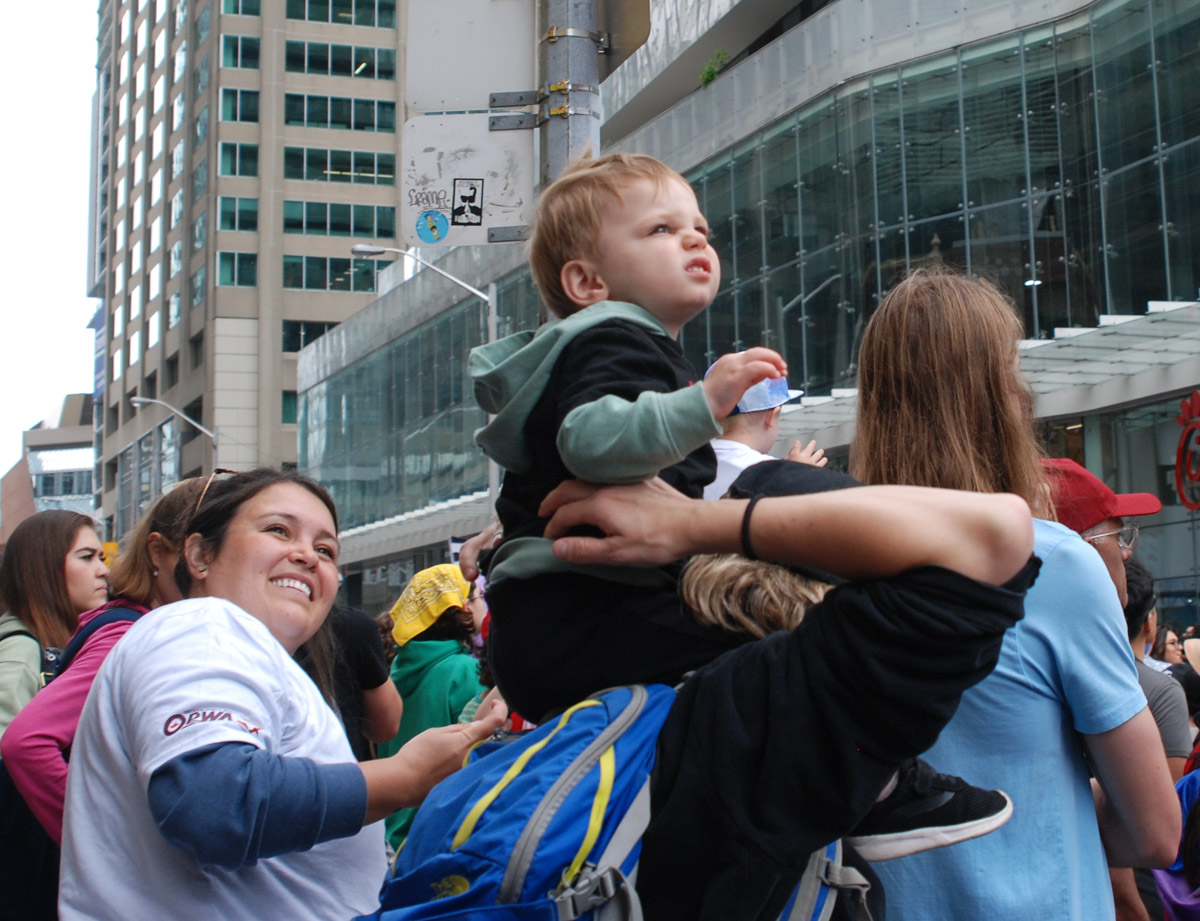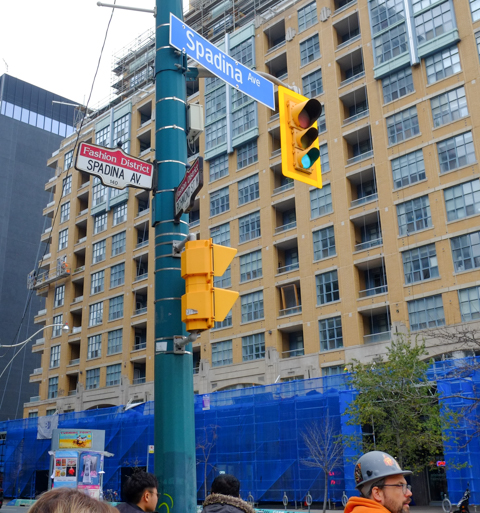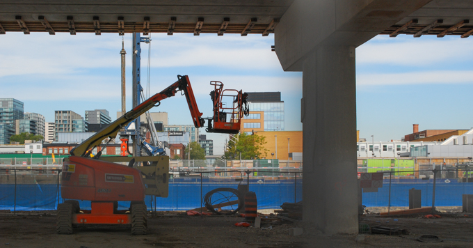 below: Looking north under the Gardiner – Liberty Village provides that background in this image.