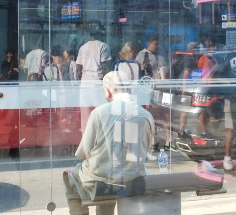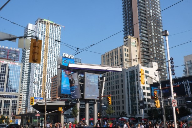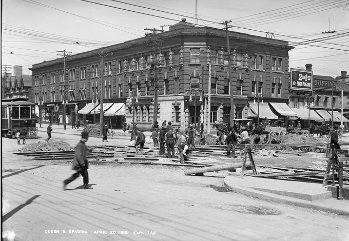 below: Streetcars waiting at Dufferin Loop, Dufferin south of King.