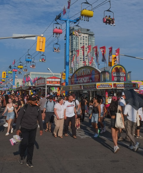 below: The arch marks the Dufferin Gate, the west entrance to the Exhibition Grounds.