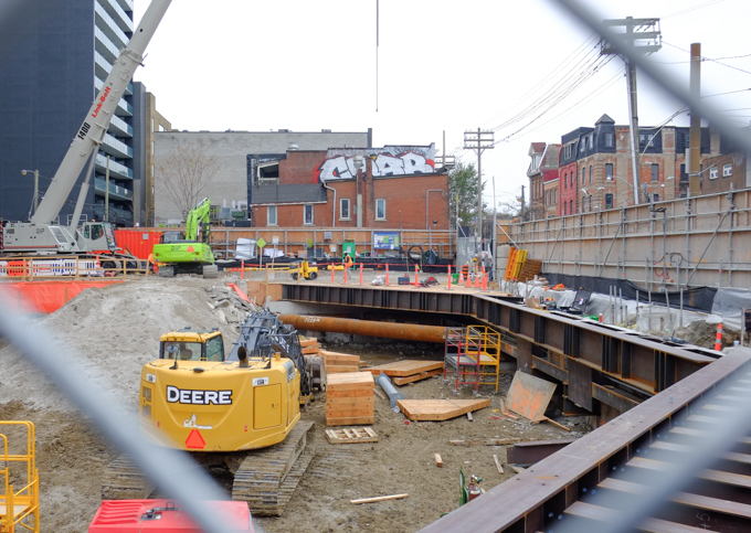 below: More Ontario Line construction as seen from Platform 4 at Exhibition station