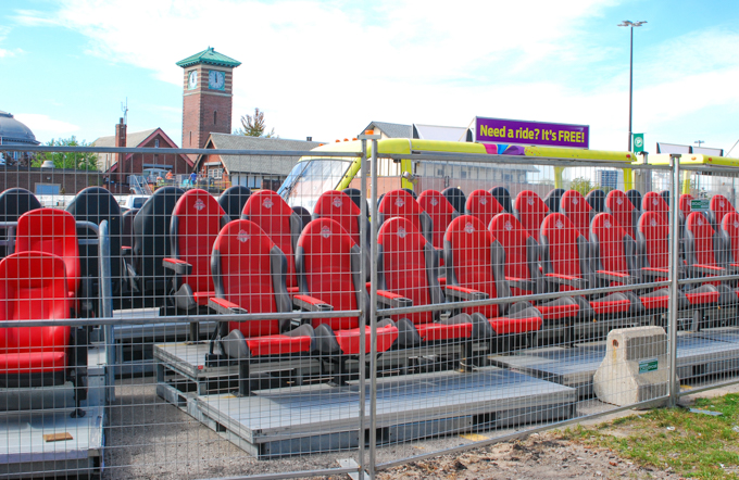 below: South end of BMO Field, looking east towards downtown and the CN Tower.