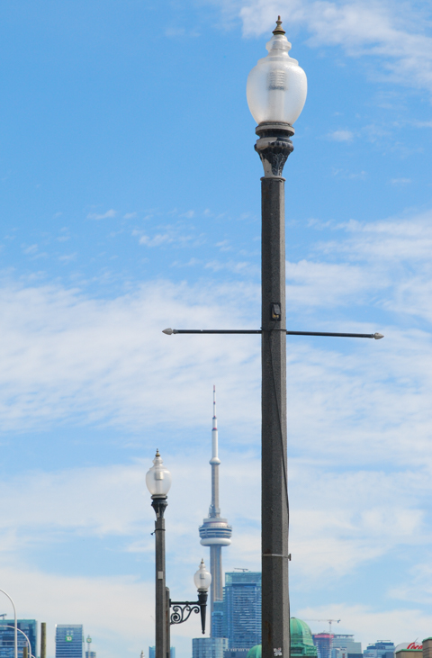 below: Some of the lights seen at the Exhibition – with the CN Tower in the distance.