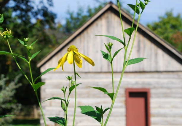 below: The Scadding cabin was originally built in 1794 by John Scadding on land that he owned east of the Don River. He owned more than 200 acres and his property stretched from Lake Ontario to what is now the Danforth. The next owner of the property used the cabin as an out-building. In 1879 it was donated to the York Pioneer and Historical Society who arranged to have it moved close to its present site to celebrate the opening of the Industrial Exhibition (now the CNE).