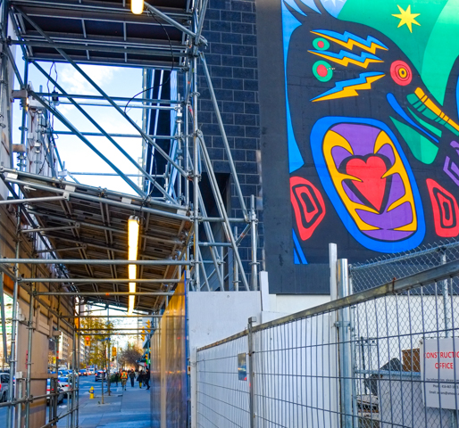 The Grand Hotel was demolished to make room for a 68 storey skinny tower (on a larger base – i.e. the lower floors will be bigger, podium-like). No facades to save here. Once construction starts on this new building, the mural will become partially obscured again.