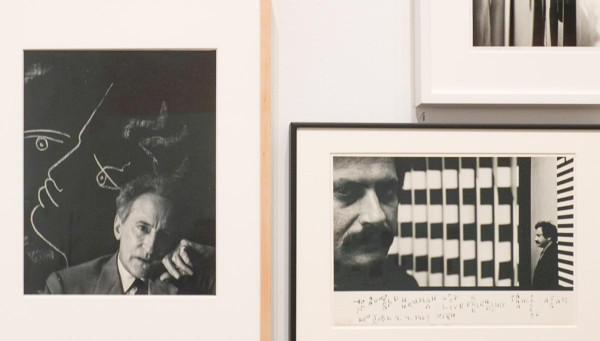below top: from left to right – Phillip Glass 1981 composer, artist Roy Lichtenstein 1975, and Annie & Josef Albers 1976 (also artists)
