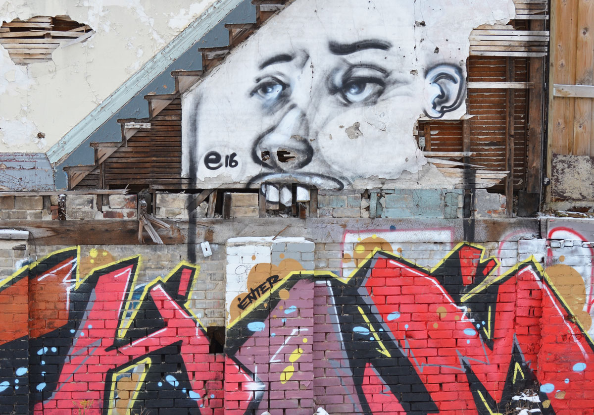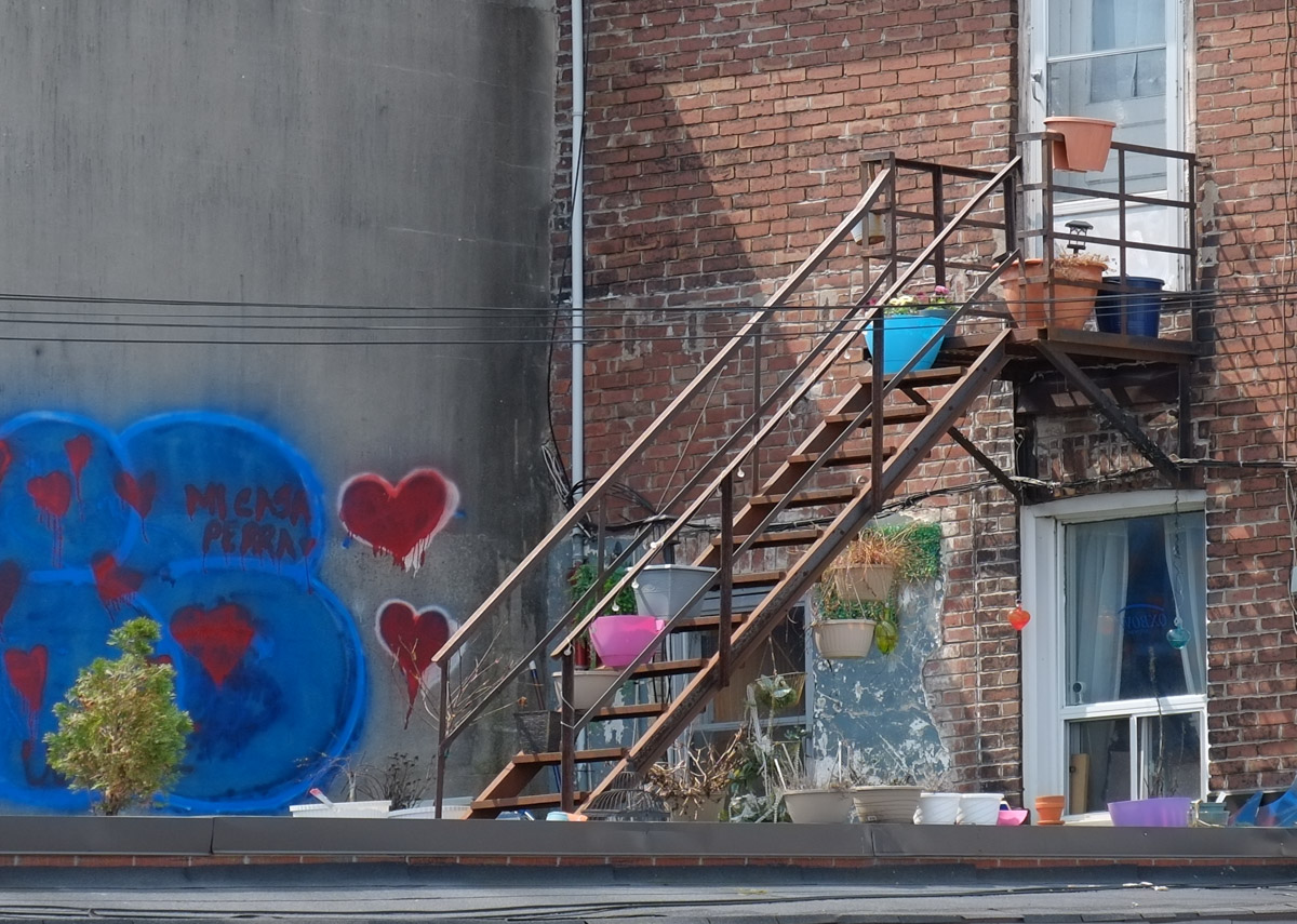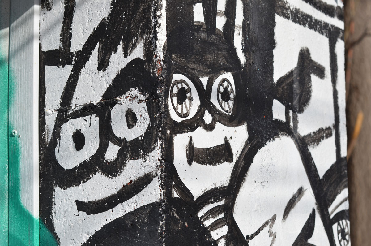 I also liked the way that the street art on the open gate merged with the painting on the wall behind.
