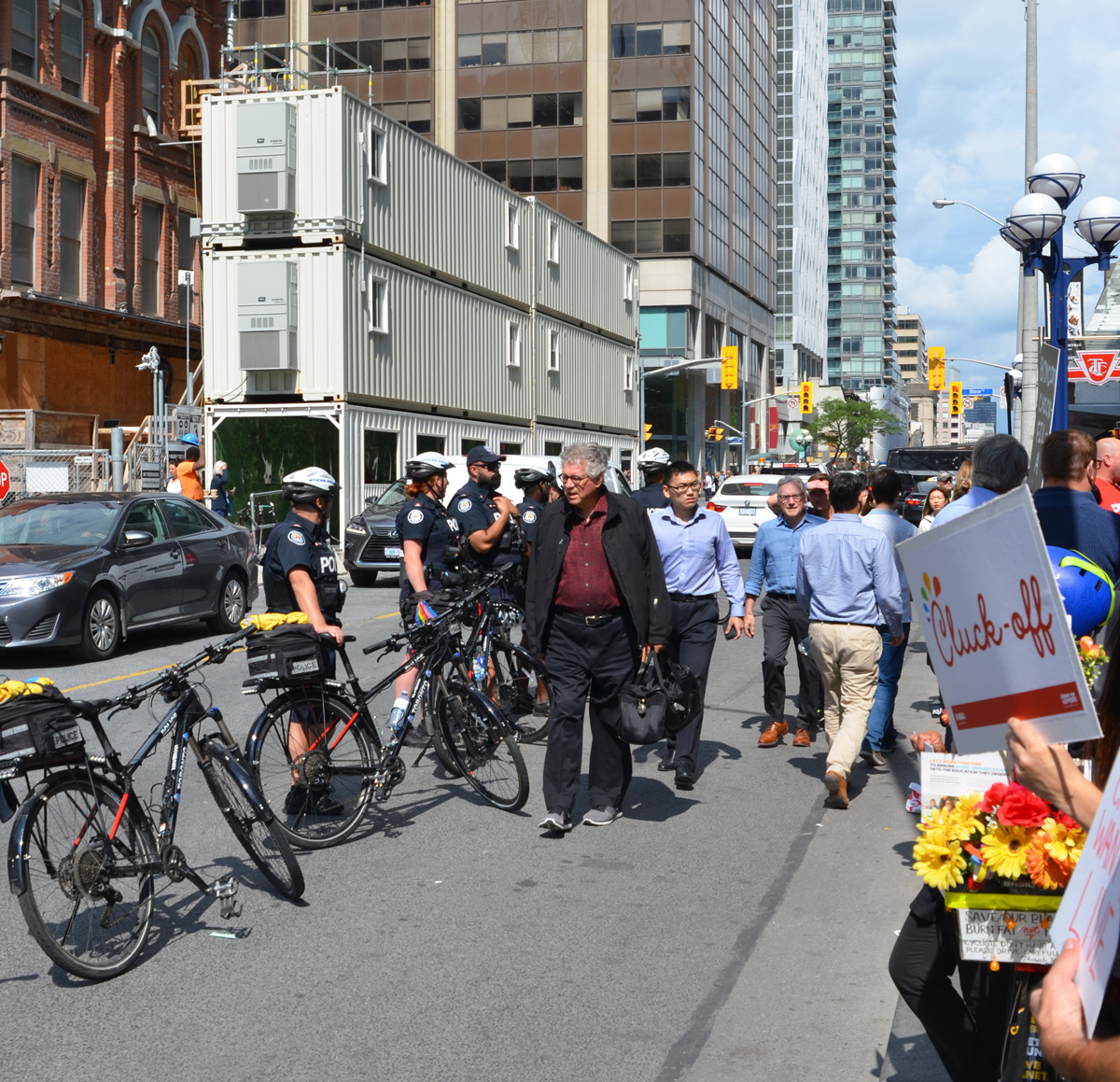 The march stopped for a few minutes when it reached Queen Street. There was much traffic confusion and chaos (and honking of horns) at the intersection of Queen and University until the police closed all traffic on Queen Street.