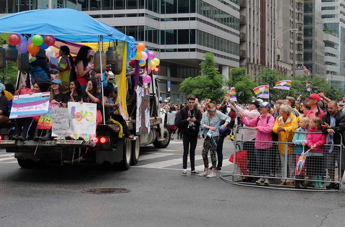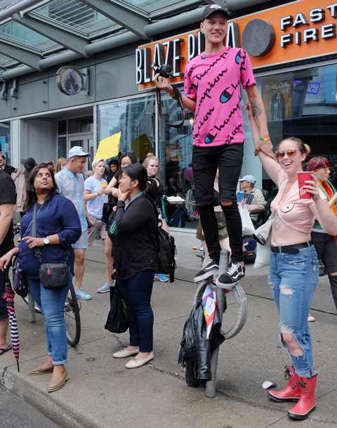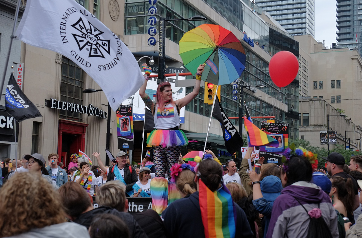 This is a blog post full of people shots from Sunday of Pride week-end. Some taken during Church Street festivities and some along the parade route. There are posed shots, selfies, and a few candids. To me, Pride is about the people – the diversity of the crowd, the non-judgemental ‘come as you want’ attitude. Put on your party hats and join the celebration.
