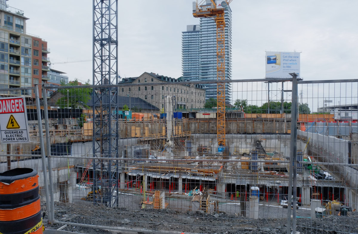 below: One of the buildings on Distillery Lane is being refurbished. Yellow crane is for new development on Parliament.