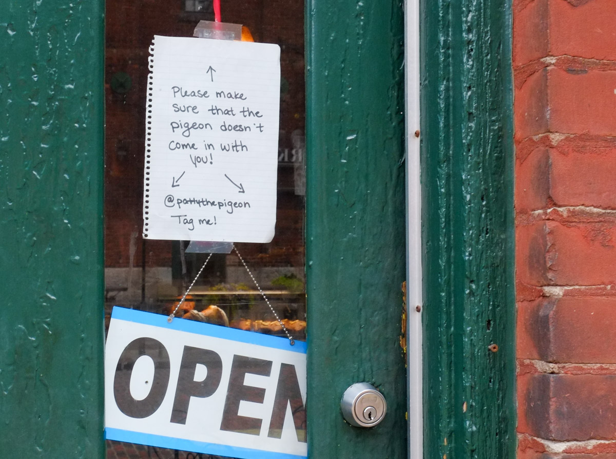 below: Note on the bakery door – Please make sure that the pigeon doesn’t come in with you! Patty the pigeon wasn’t there the time that I went in.