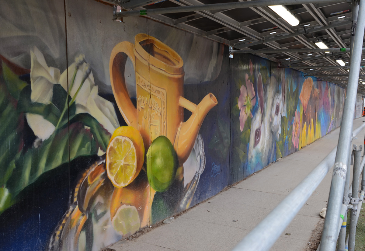 below: A Jimmy of a different kind, a fantastic cacaphony of colours and shapes in a mural by Jimmy Chiale