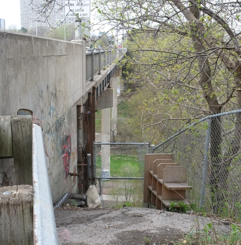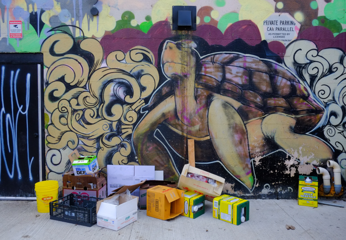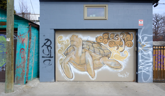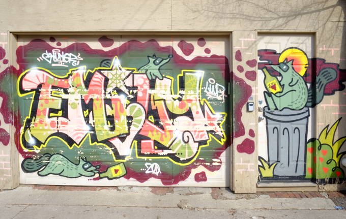 Ossington Avenue is an interesting street to walk with it’s numerous stores, restaurants and coffee shops. But there is another fascinating world hiding behind the main street in the numerous lanes and alleys in the area. A few weeks ago I presented some images from these alleys (Behind Ossington, 15 April), but I barely scratched the surface of what is there.