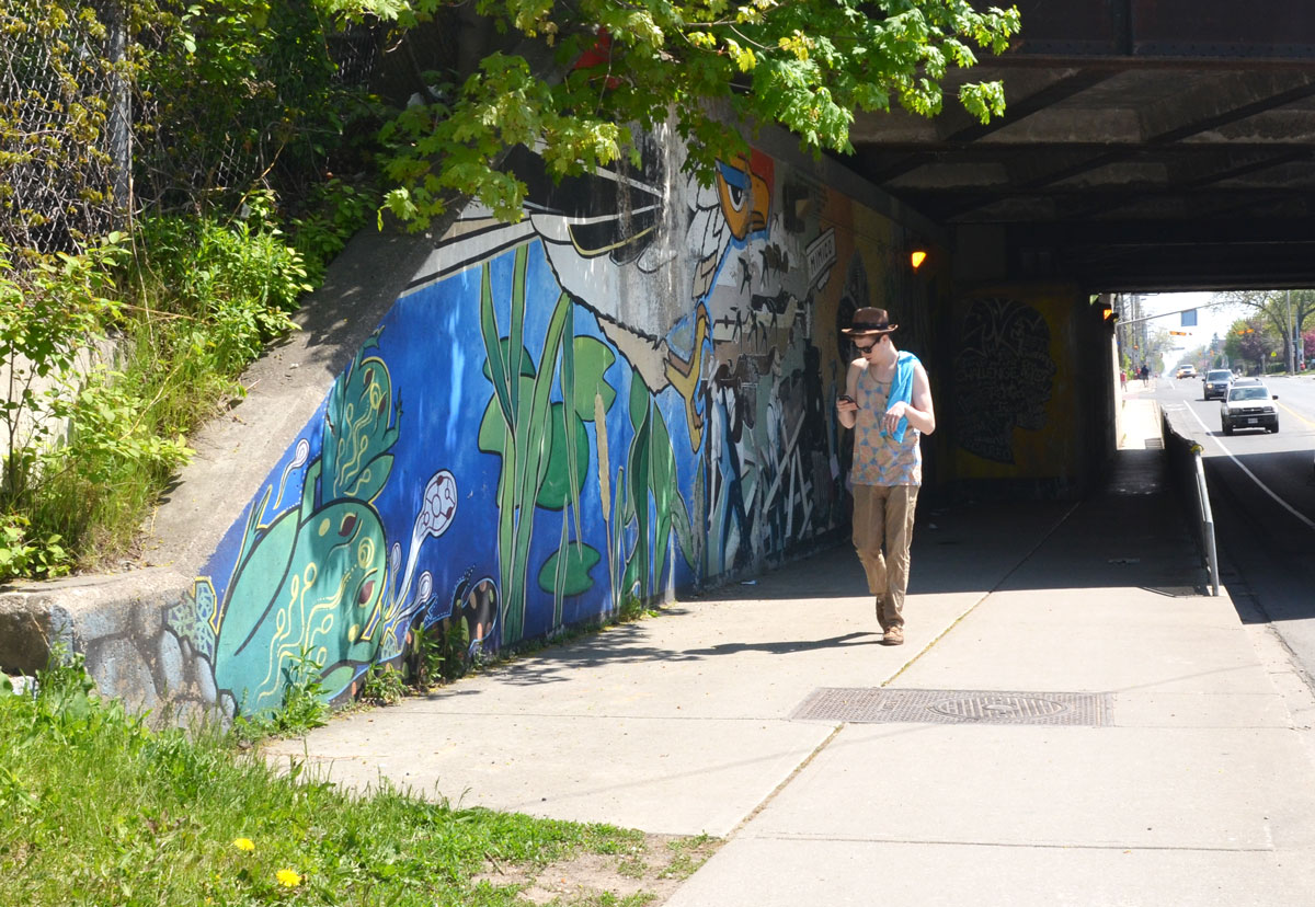 below: Walking across Dundas Street. “Believe women”. “My body is not public property”.