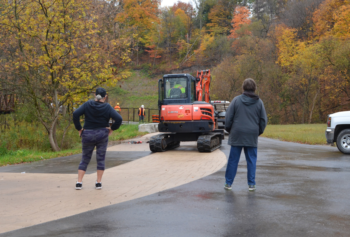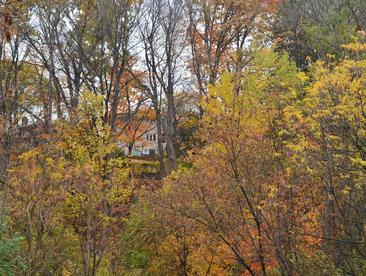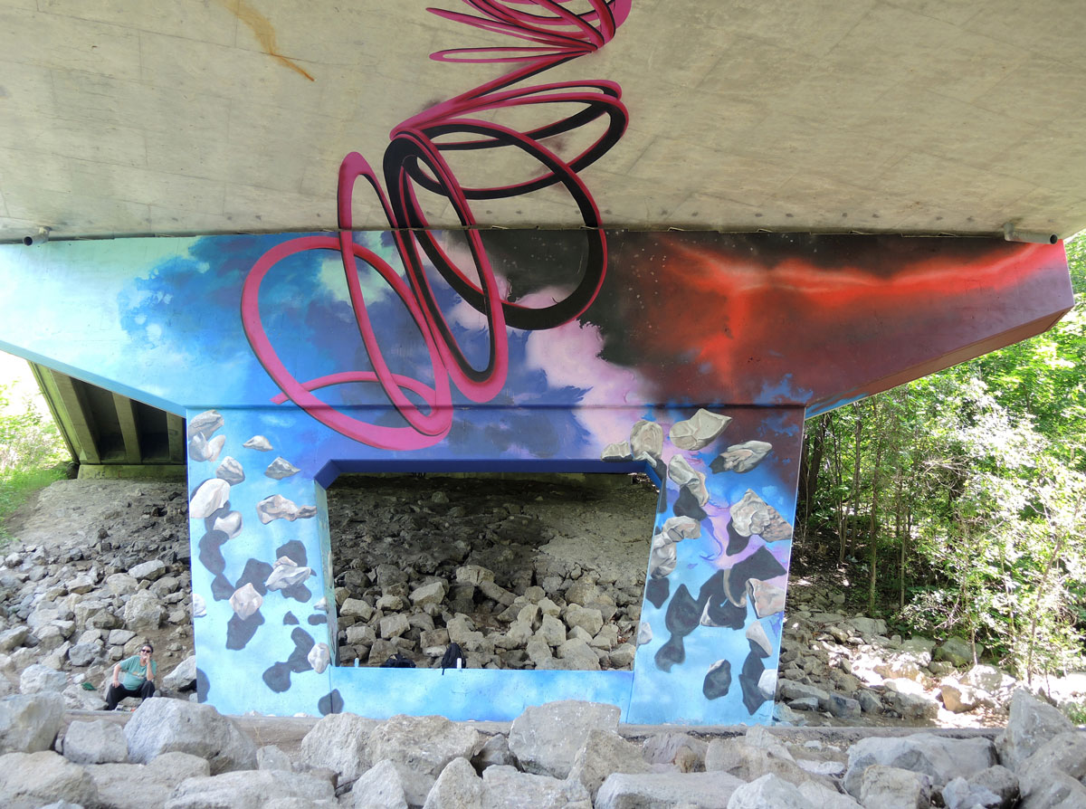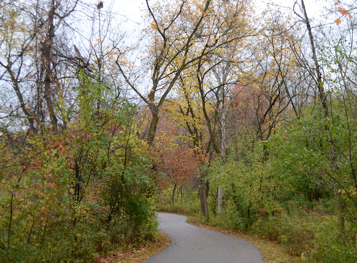 below: Although the path is through the ravine and it runs beside the Don River, it also runs adjacent to the Don Valley Parkway. There are only a few places on the trail where you can see the highway but there is a constant rumbling noise from the cars passing by.